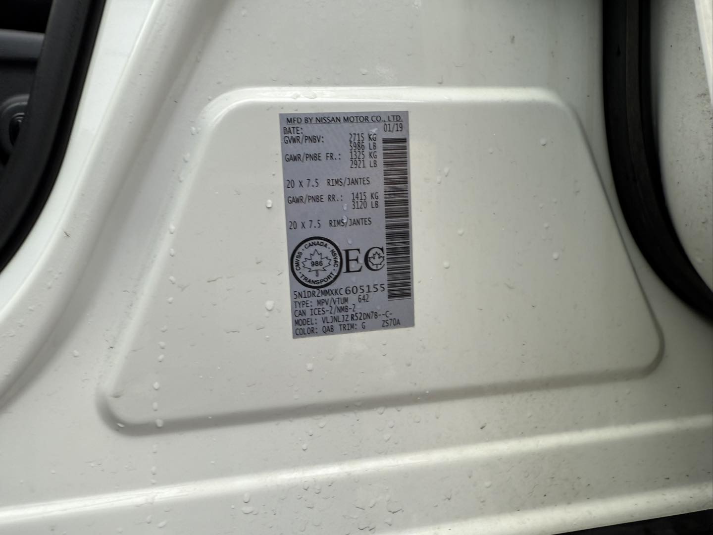 5N1DR2MMXKC605155Transmission: